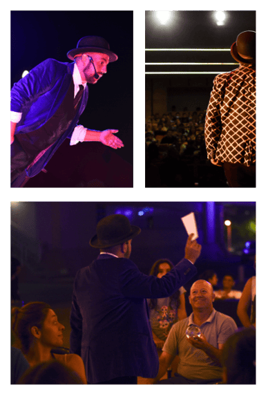 ...también contarlas. El poder de la palabra y los símbolos que la magia me permite contar abren puertas a un mundo lleno de ilusiones. Me gusta personalizar lo que hago y me adapto a cada escena, a cada persona y a cada medio. La magia es una experiencia compartida donde ustedes eligen creer en algo que saben que es ficticio pero que aporta una chispa extraordinaria en medio de lo cotidiano. Disfruto creando trucos de magia, diseñando escenografías, y encontrando formas innovadoras de potenciar marcas e ideas.